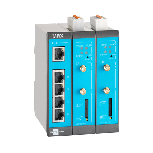 Den smarta Insys MRX-seriens routrar kombinerar KRITIS (kritiska applikationer) IT-säkerhet, toppmodern teknik, hög datorkraft, och programmerbarhet. Förändrade krav kräver flexibla lösningar. Modulariteten i MRX-serien gör att du kan montera en anpassad router för varje enskild applikation. Modulära plug-in-kort (MRcards) med ytterligare gränssnitt kan läggas till efter behov. MRX finns med tre eller fem modulplatser och med Ethernet, 4G eller 450MHz.som basvariant. Se mer i databladet. Vår tidigare MRO-L200 är numera MRX2 LTES.